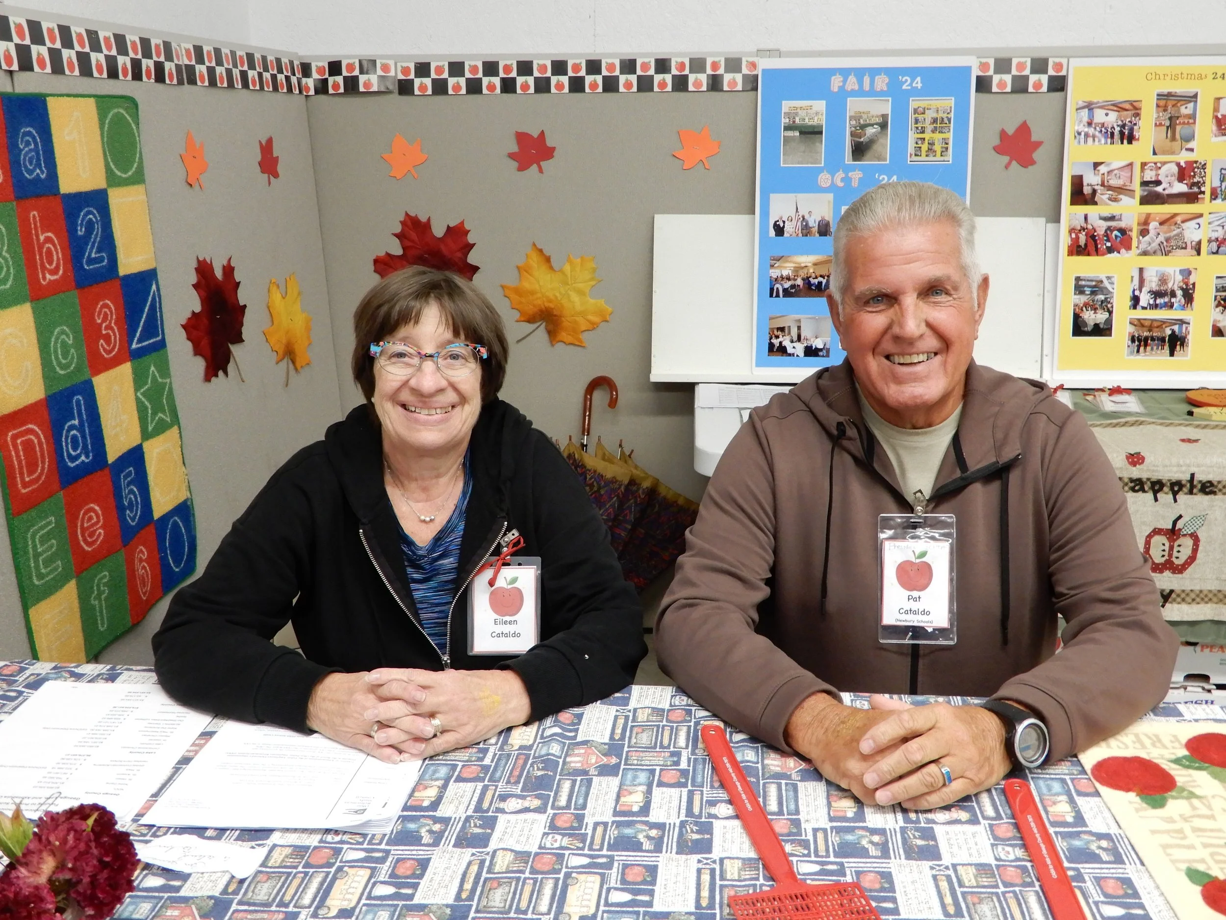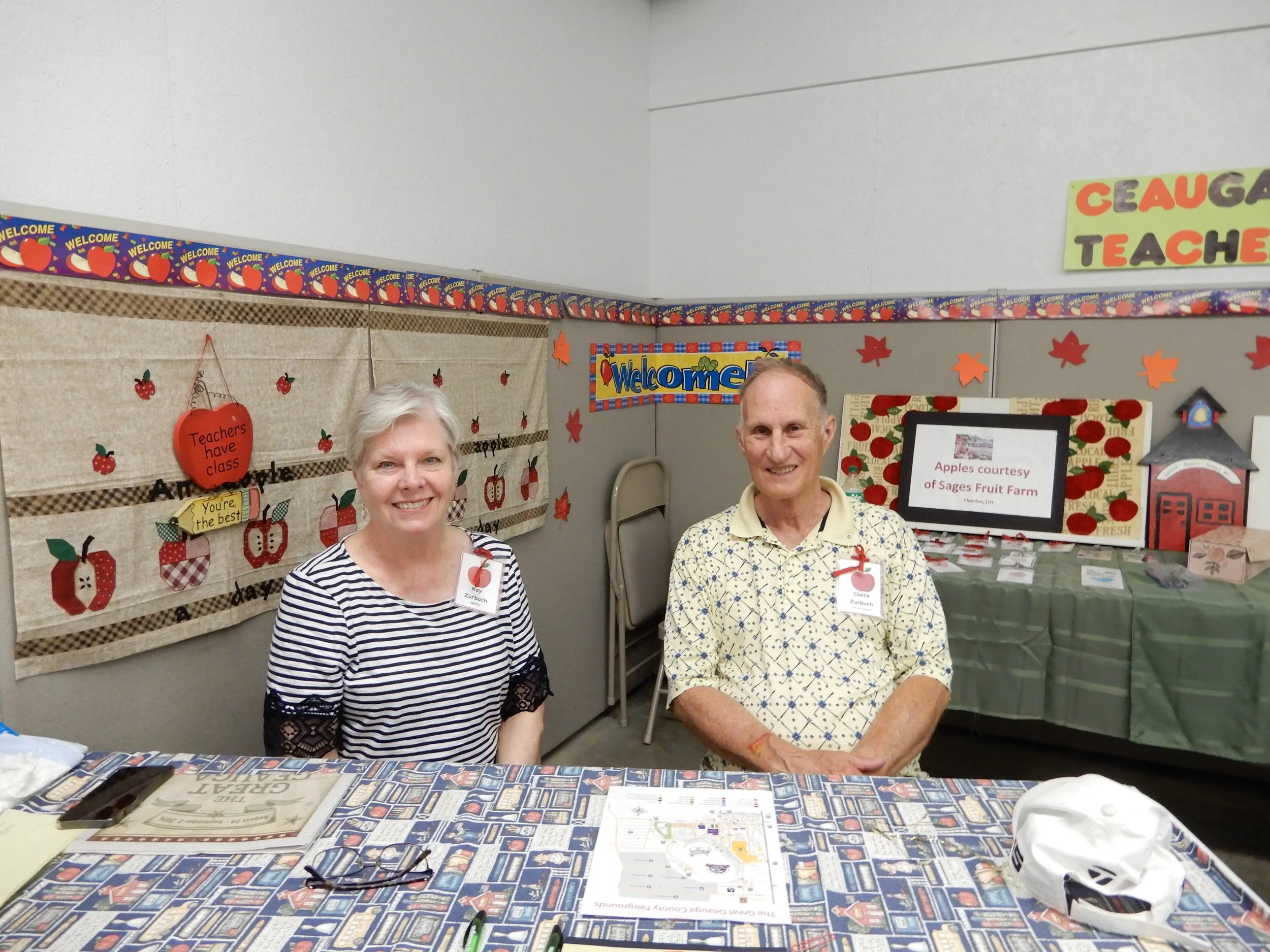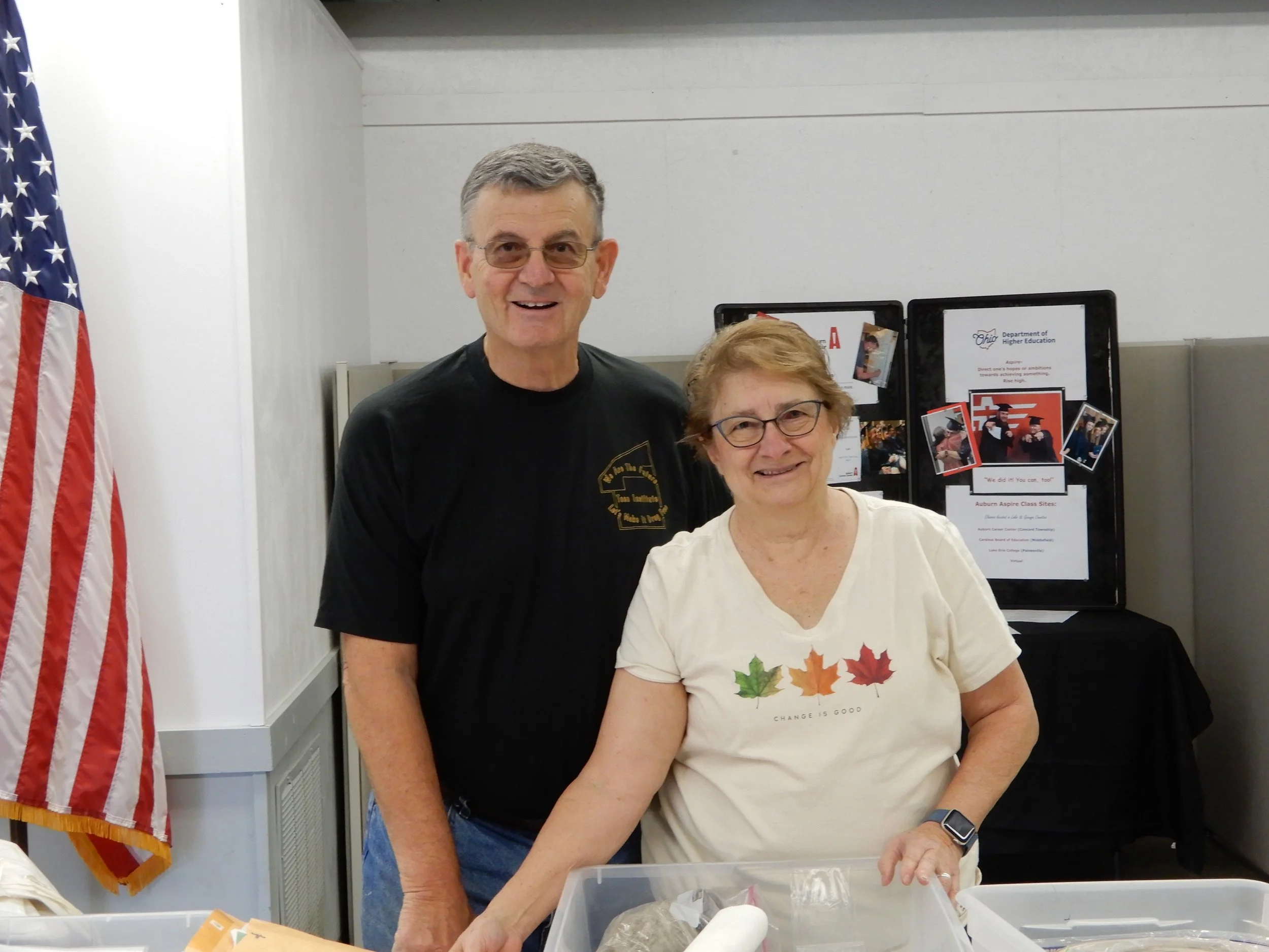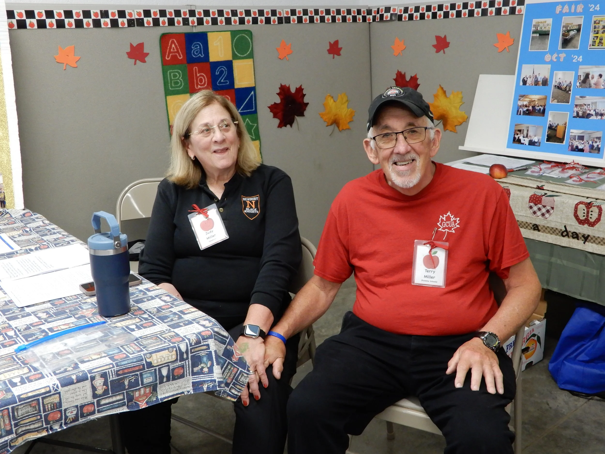 Wally Waldbauer and Kathy Hryb soliciting sign-ups for manning the GCRTA booth in the Ed Bldg at Geauga County Fair