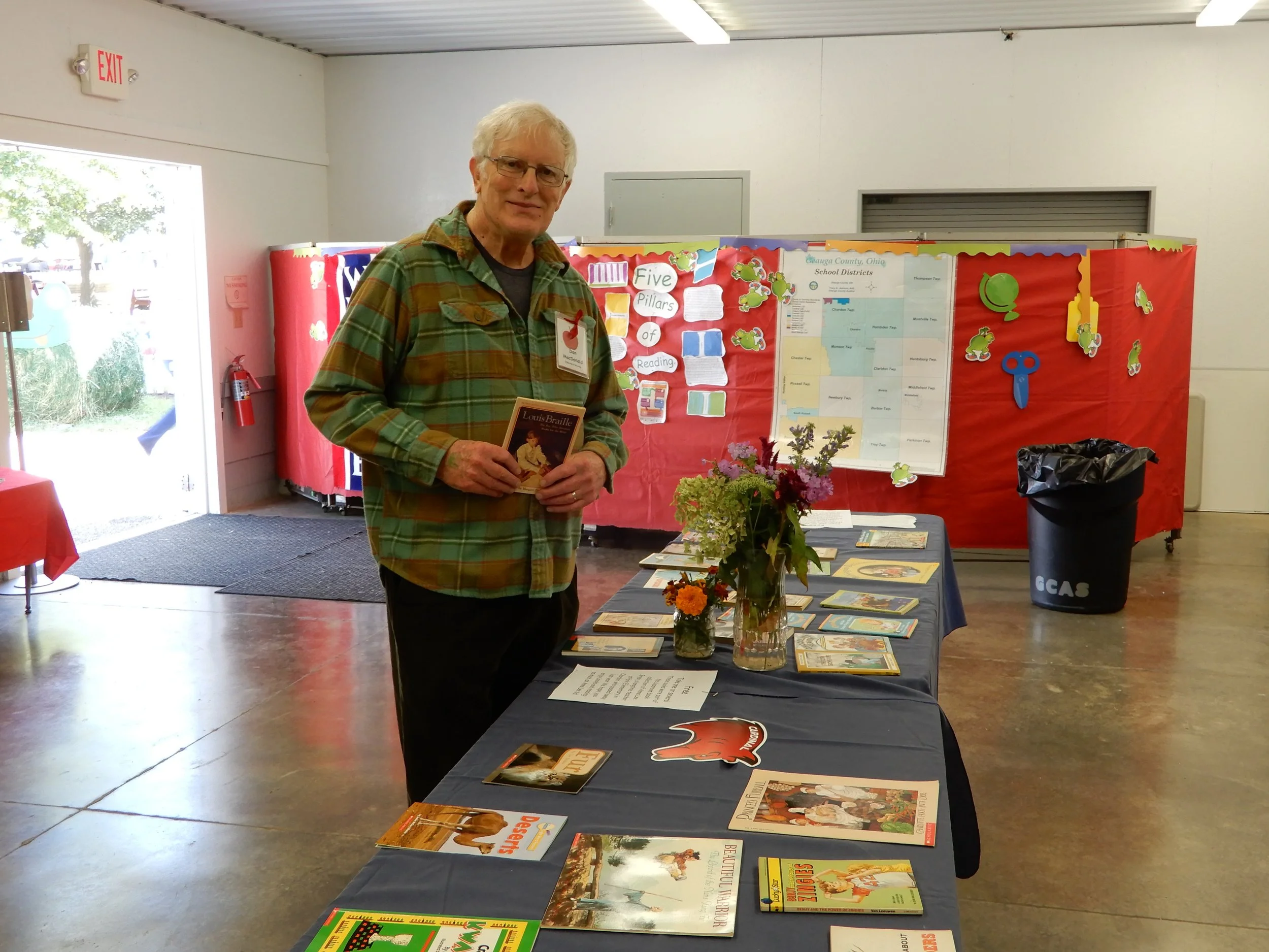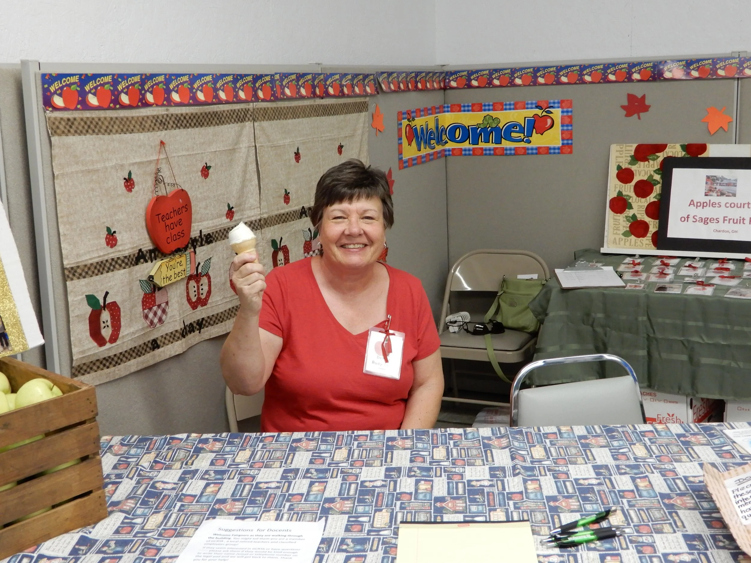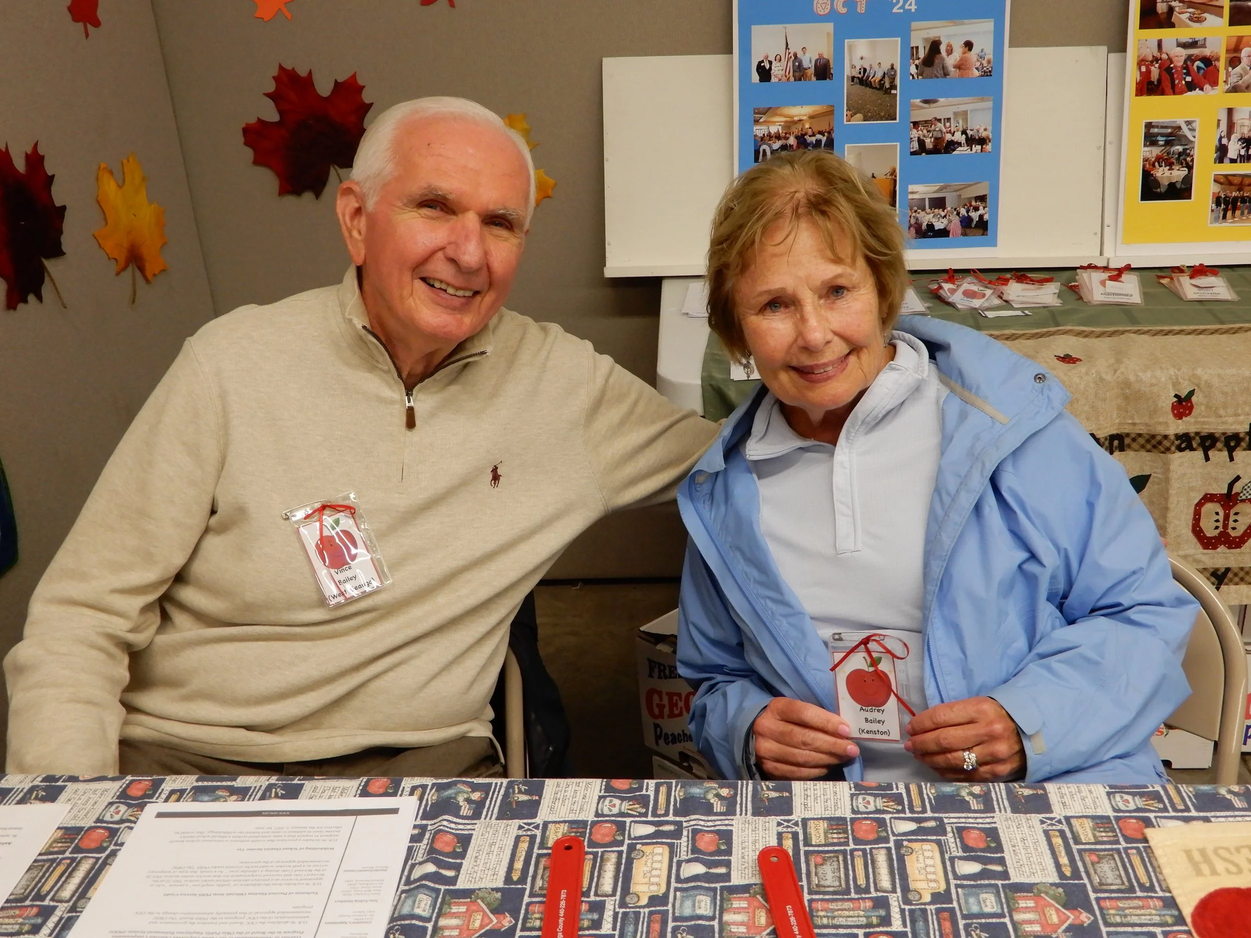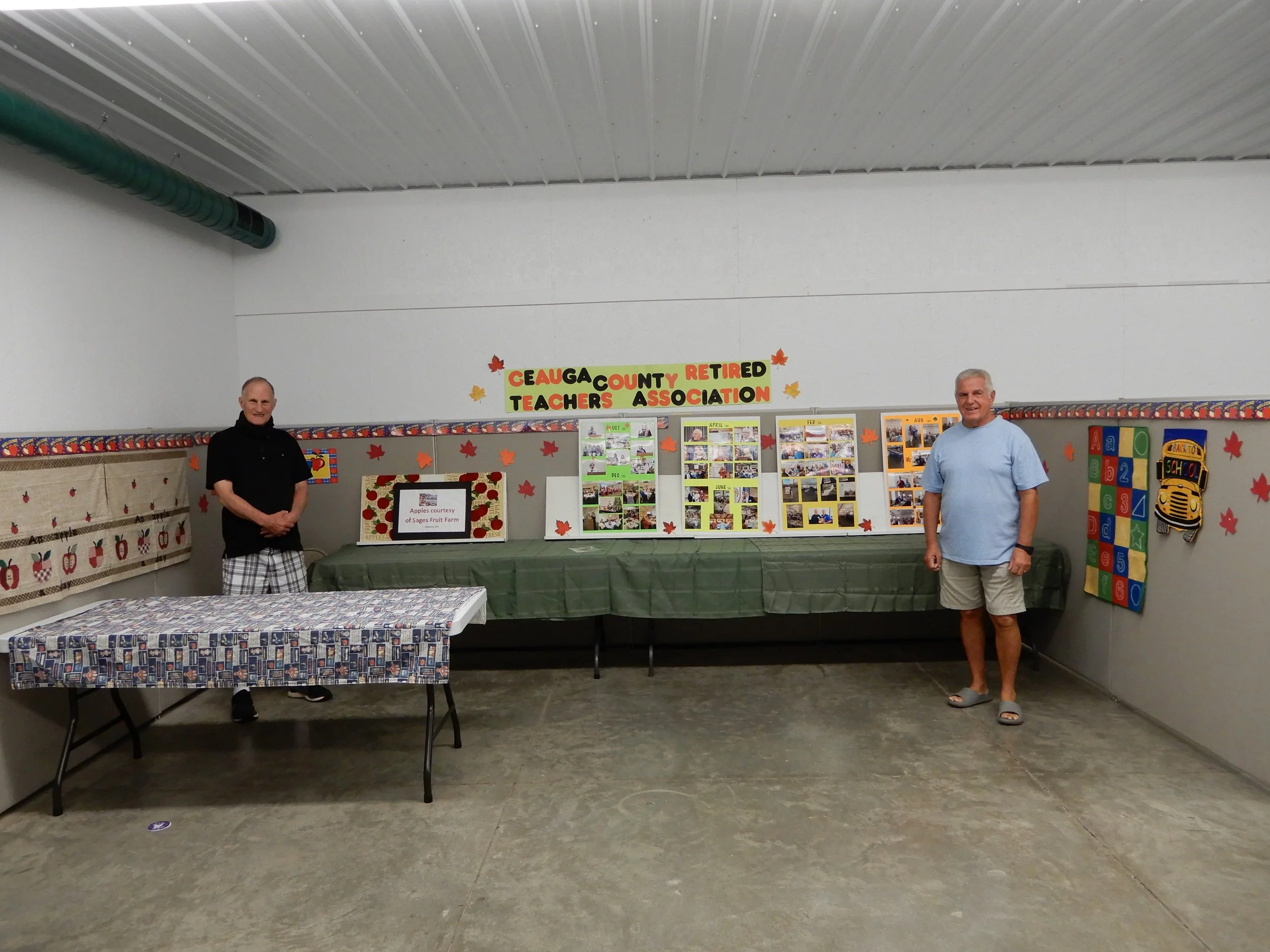 Wally Waldbauer and Kathy Hryb soliciting sign-ups for manning the GCRTA booth in the Ed Bldg at Geauga County Fair