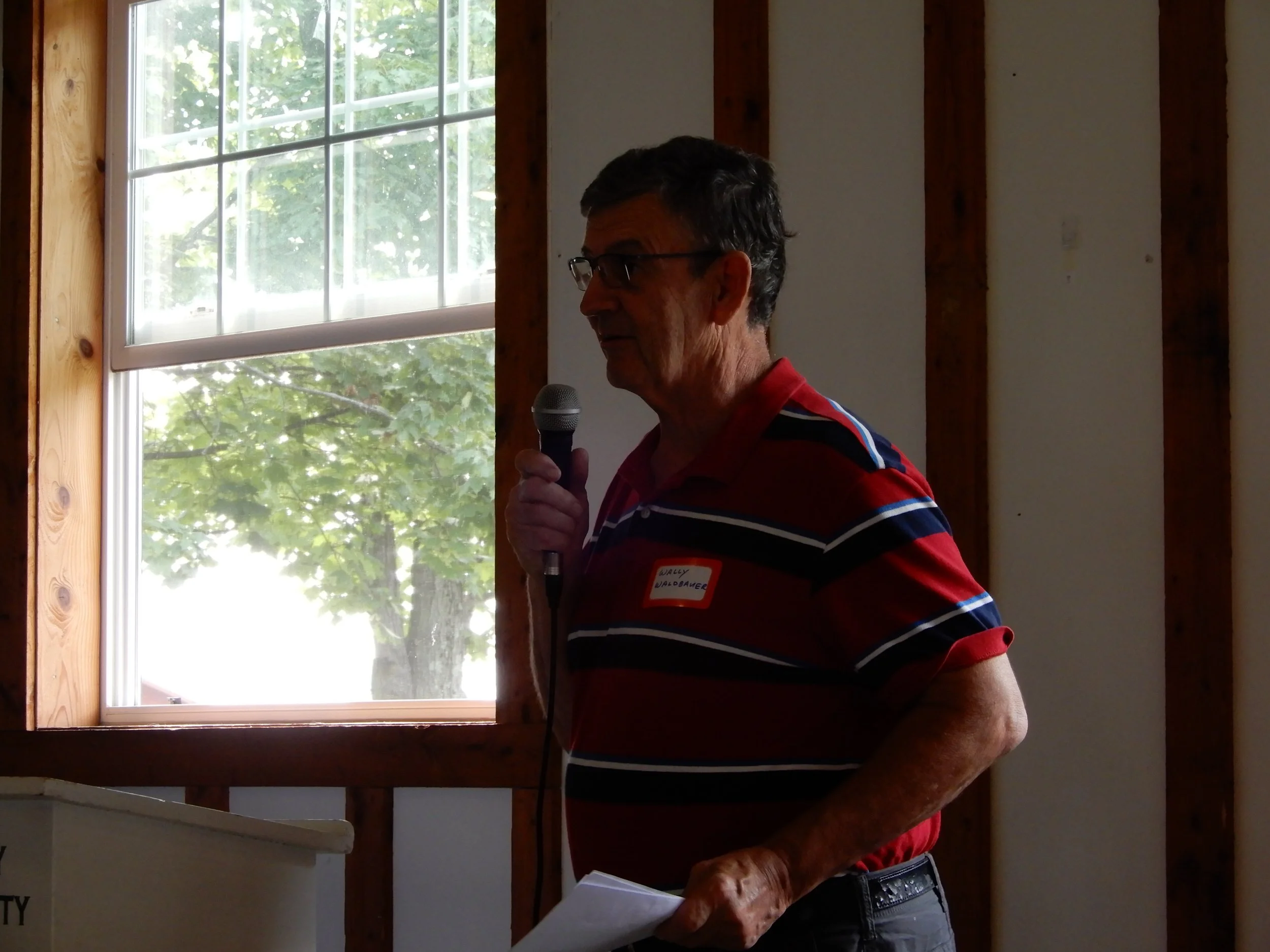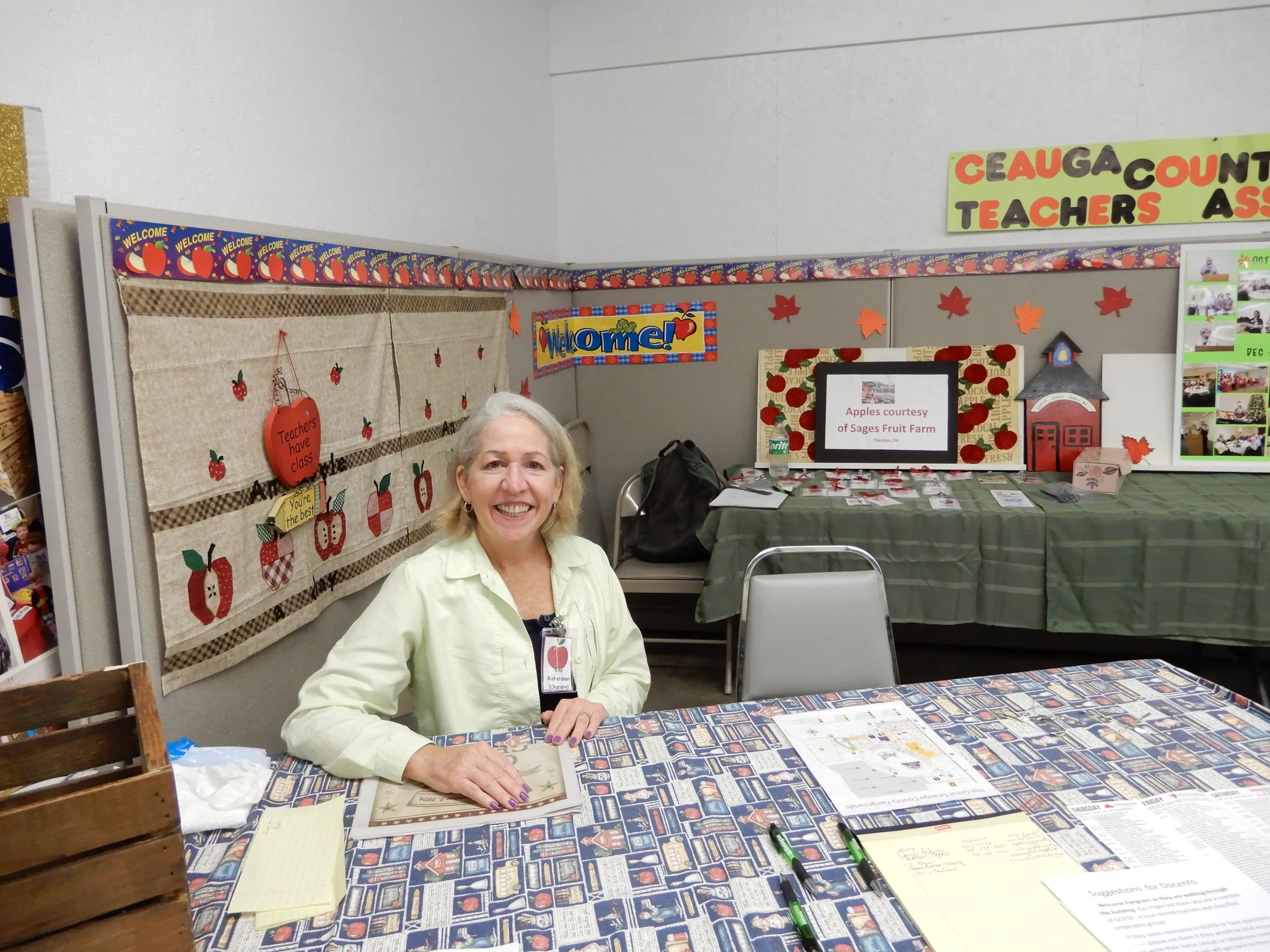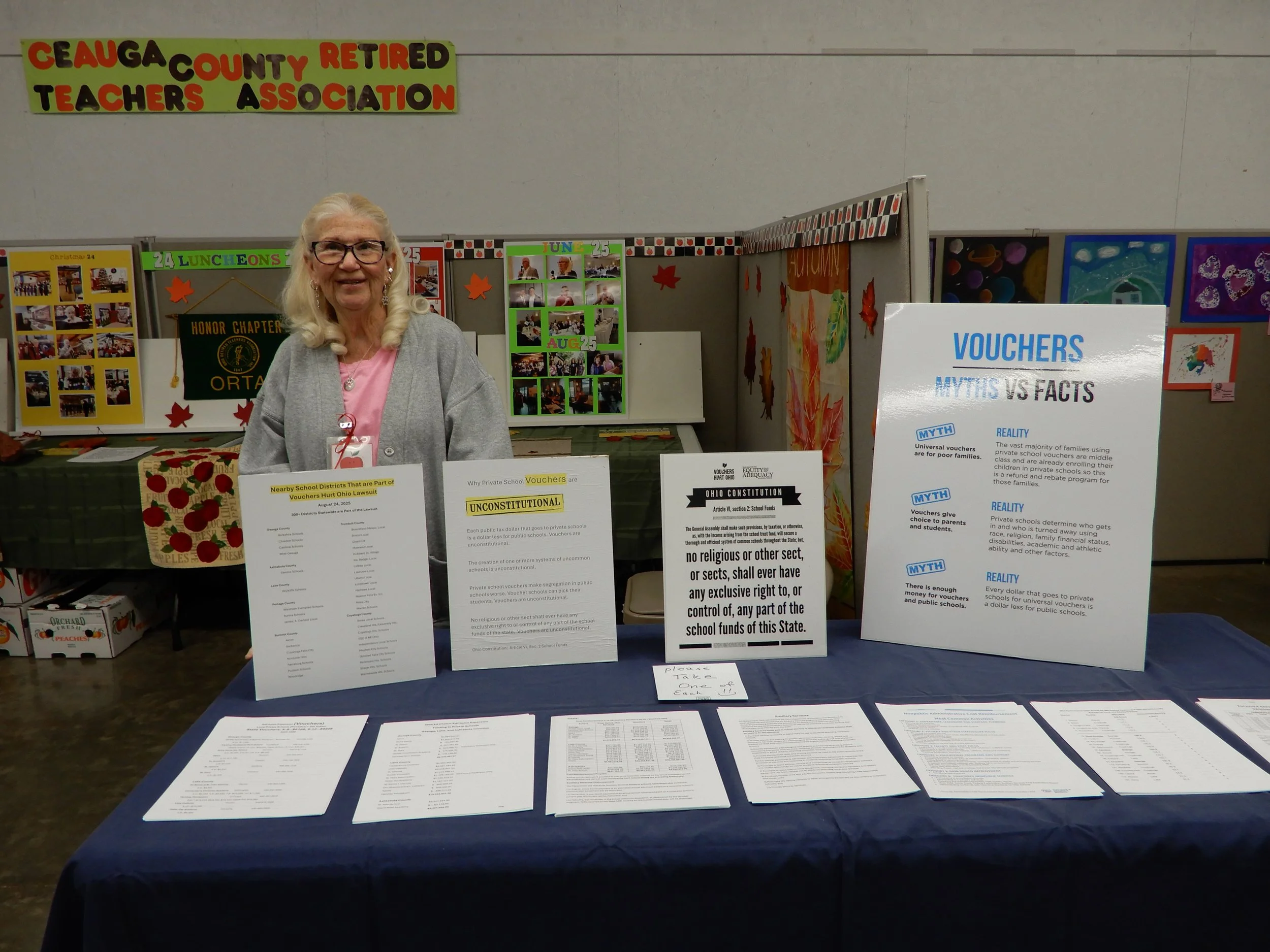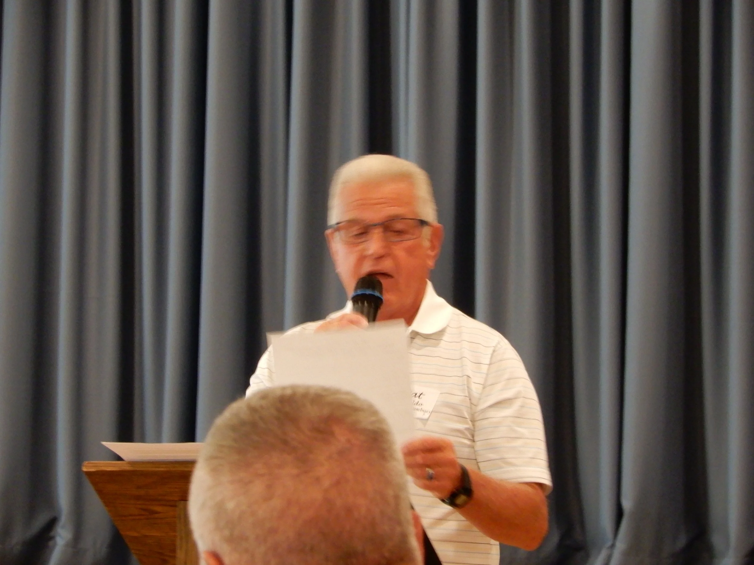 Wally Waldbauer and Kathy Hryb soliciting sign-ups for manning the GCRTA booth in the Ed Bldg at Geauga County Fair